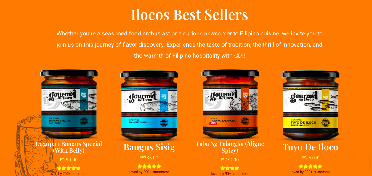 Ang Gourmet De Iloco (GDI) ay isang gourmet food company featuring delicacies from the Ilocos Region, particularly Dagupan City. Ang Dagupan ay kilala bilang Bangus Capital of the Philippines. Dedicated sila sa pagpapanatili ng Filipino culinary heritage sa pamamagitan ng paggawa ng premium gourmet products na tunay na nagrerepresent sa authentic flavors ng lokal na lutuin. Pinangangalagaan din ng kumpanya ang sustainability, gamit ang mga sangkap mula sa lokal na magsasaka at eco-friendly production process.