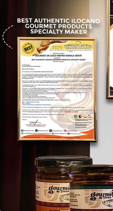 Maipagmamalaki talaga ang Gourmet De Iloco Products. Recognized ng international award-giving body! Nakakaproud maging reseller and distributor ng kanilang mga high-quality bottled gourmet food products!